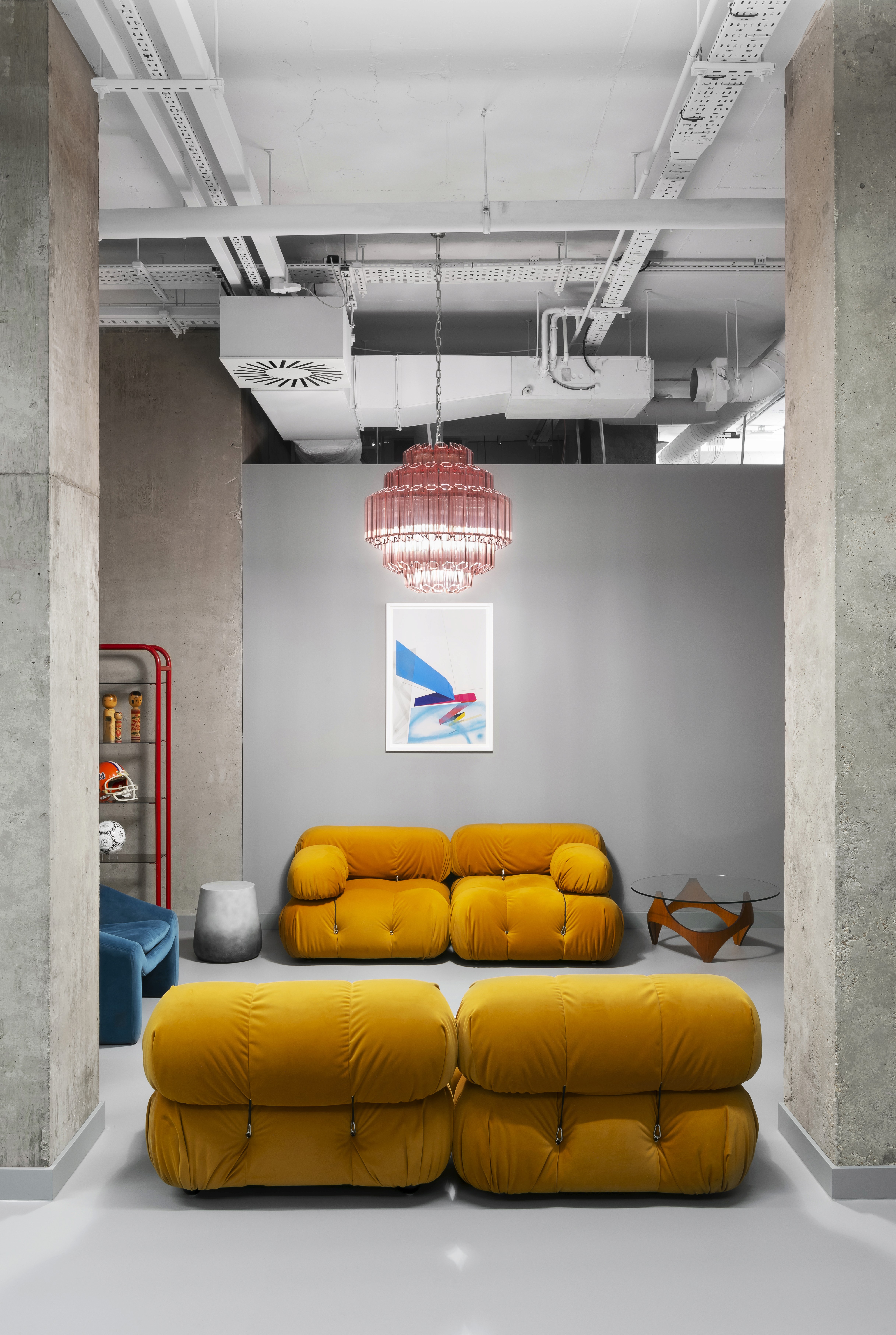 The carefully curated furniture, natural clay plaster finishes, and stainless steel-clad kitchen add character and functionality. This innovative layout offers a seamless flow, fostering a sense of discovery and providing diverse work environments that cater to different cultures and values.