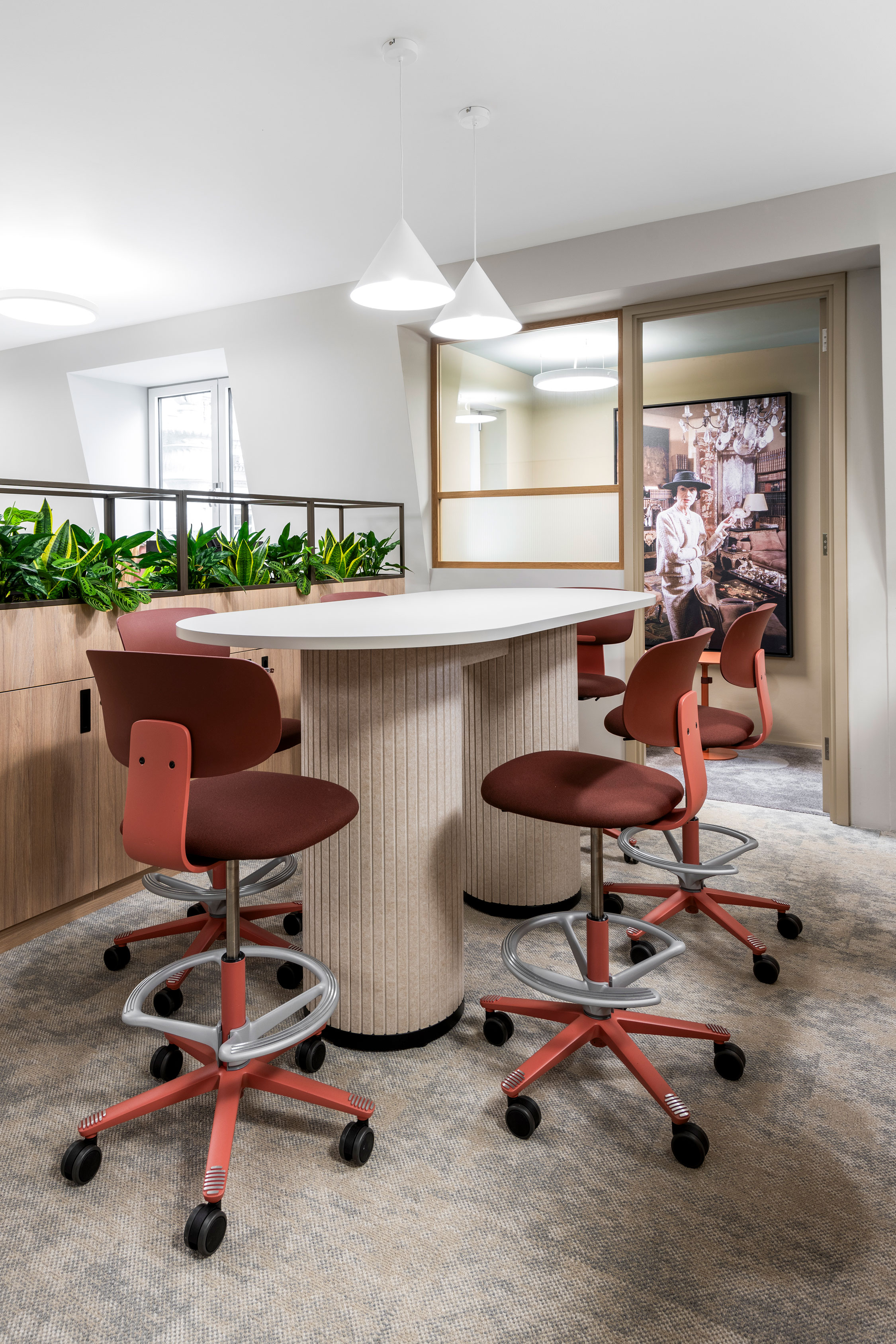 Through a flexible floor plan, biophilic design, and sustainable materials, we created a light, fresh, and inviting environment. Roman arch motifs, inspired by the building’s classic architecture, add a unique character to the space. Whether for collaboration or quiet focus, the space meets both professional needs and personal comfort, encouraging employees to thrive.
