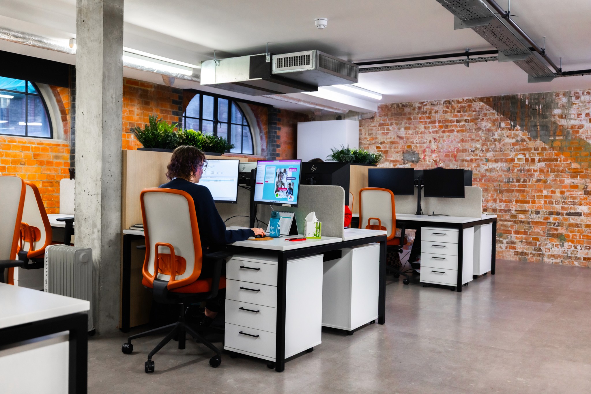 The design draws on the character of the building itself. Exposed brickwork was retained and celebrated, giving the space an industrial warmth, while a light, restrained palette improves brightness and openness. Subtle colour accents introduce depth and distinction without relying on overt branding, creating a professional environment that feels considered and modern.