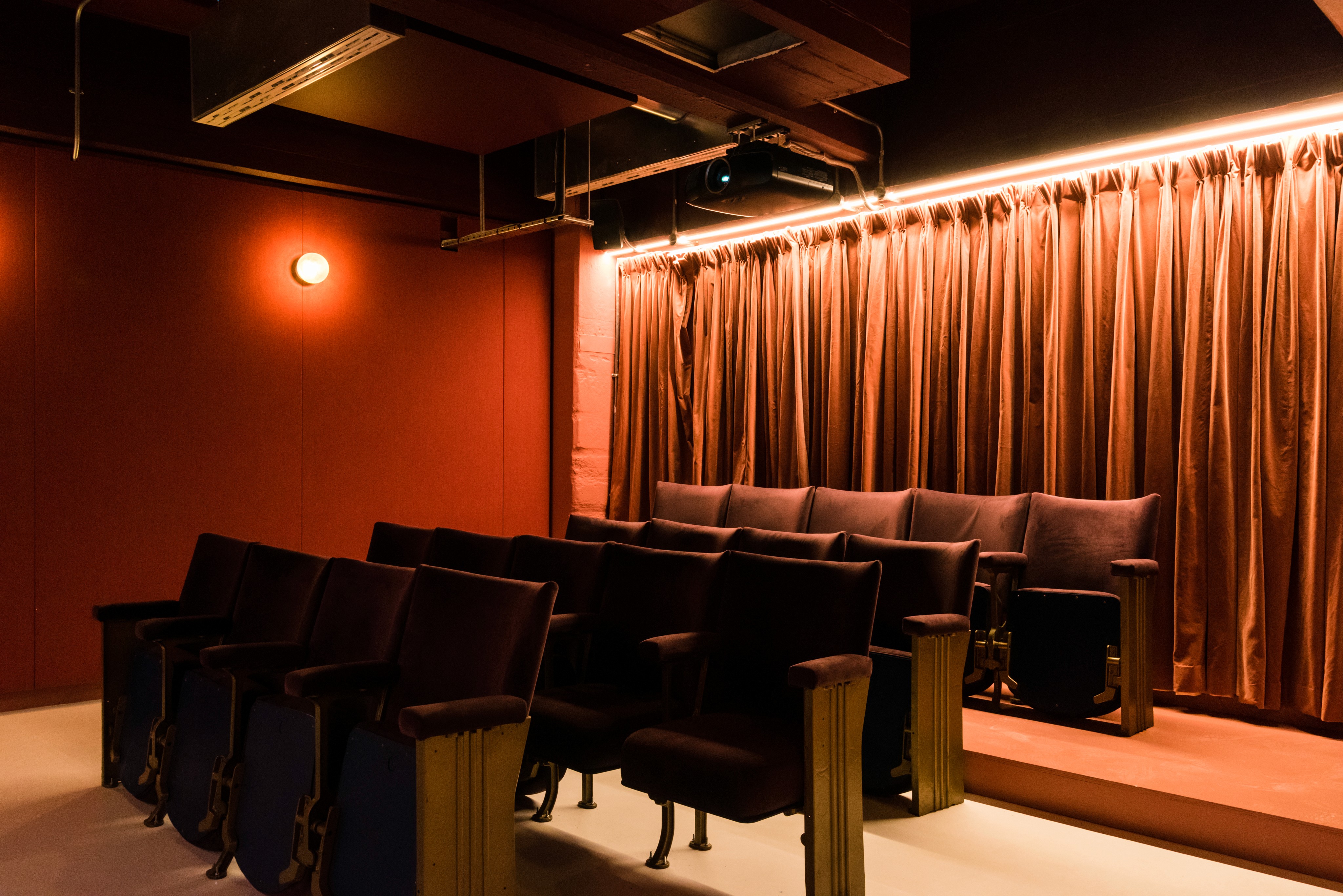 The open design uses curtains to create adaptable zones, fostering a barrier-free ambiance. Among the features is an 18-seat cinema with retro foldable chairs. There's a newly constructed restroom area reflecting '80s nostalgia, featuring hues like beige, avocado, sky blue, and pink. An old 12-foot snooker table was reinvented as a boardroom table, paired with vintage lighting. Our project also encompassed full electrical and mechanical provisions, including new lighting, and a finishing touch of epoxy paint on the raw concrete flooring.