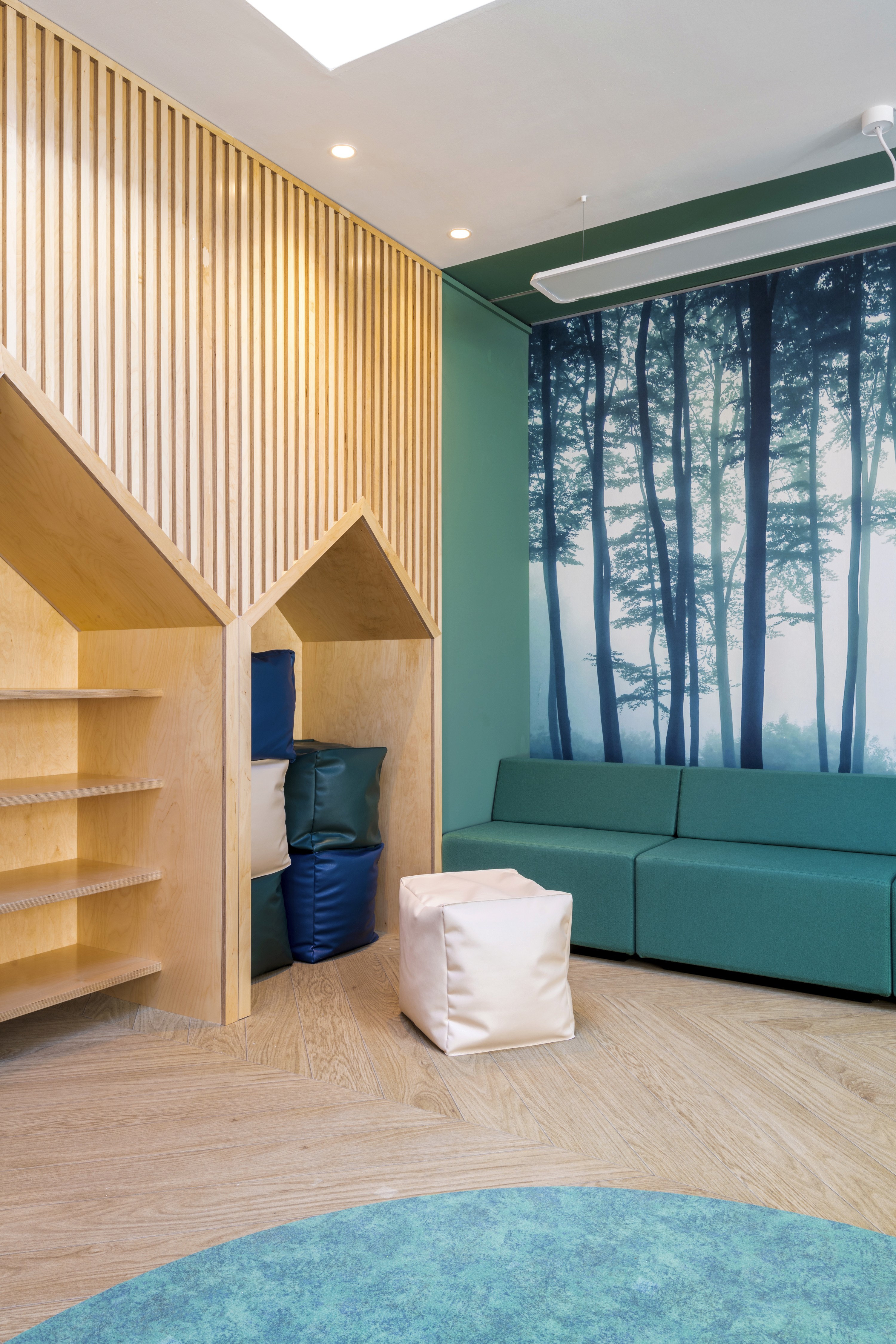 By using natural materials, adjustable lighting for sensory experiences, and cosy, enveloping spaces, we created a nurturing and flexible learning environment.